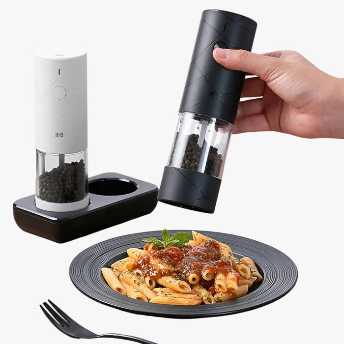 Forbedr din madlavning med SpiceMaster Elektrisk Kværn, designet til at levere præcis krydring uden besvær. Med et enkelt twist eller tryk kan du nyde fint- eller grovmalet salt og peber til enhver ret.